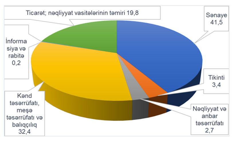 İnformasiya və rabitə. İnformasiya və rabitə müəssisələri tərəfindən 2025-ci ildə faktiki qiymətlərlə 1 milyon 127,6 min manatlıq xidmət göstərilmiş, xidmətlərin 718,4 min manatı və ya 63,7 faizi əhali tərəfindən istehlak olunmuşdur. 2024-cü illə müqayisədə informasiya və rabitə xidmətlərinin həcmi dəyər ifadəsində 8,0 faiz azalmış, bu sahədə əldə olunmuş gəlirin 76,3 faizi dövlət sektoru tərəfindən həyata keçirilmiş, 2024-cü ilə nisbətən 4,2 faiz azalmışdır.