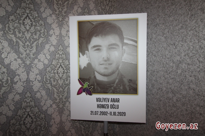 Şəhidlərimizi tanıyaq və tanıdaq---------------------------- Qüdrətli, rəşadətli Azərbaycan Ordusu 2020-ci ilin 27 sentyabrında başlayan İkinci Qarabağ müharibəsində Müzəffər Ali Baş Komandan İlham Əliyevin rəhbərliyi altında Tarixi Qələbə qazandı. O Qələbə ki, müasir hərb tarixi üçün nümunə olan əsl qəhrəmanlıq dastanına çevrildi. Azərbaycan xalqının 30 illik Vətən həsrətinə, yurd, el-oba niskilinə 44 gündə son qoyuldu. Vətən müharibəsində böyük Qələbə qazanan Azərbaycanın igid övladları işğalçı Ermənistan ordusunu 44 gündə darmadağın edərək düşməni torpaqlarımızdan qovdular. Cəsur, igid Vətən övladları doğma torpaqlarımız uğrunda son damla qanına qədər vuruşmaqdan çəkinmədilər. Ölümün gözünə dik baxaraq əsl qəhrəmanlıq nümunəsi göstərdilər. 44 günlük müharibədə misilsiz igidlik nümunələri göstərən qəhrəman ordumuz Müzəffər Ali Baş Komandanın rəhbərliyi ilə şəhidlərimizin qisasını aldı, onların qanı yerdə qalmadı. 2023-cü il sentyabrın 19-20-də Azərbaycan Ordusunun Qarabağda keçirdiyi lokal xarakterli antiterror tədbirləri zamanı qanları ilə tarix yazan qəhrəman oğullarımızın sayəsində Xankəndi və Xocalı şəhəri separatçılardan təmizləndi, Azərbaycan dövləti suverenliyini tam bərpa etdi. Bu gün doğma Qarabağda, Şuşada, Xankəndidə, Xocalıda, işğaldan azad olunmuş digər torpaqlarımızda üçrəngli Azərbaycan Bayrağı dalğalanır. Bu gün qalib Azərbaycan xalqı işğaldan azad olunmuş şəhərlərin azad olunduğu tarixləri xüsusi gün olaraq qürurla qeyd edir. Artıq xalqımız ölkə başçısının müvafiq sərəncamlarına əsasən hər il sentyabrın 20-sini Azərbaycan Respublikasında Dövlət Suverenliyi Günü, Xankəndi, Xocalı, Xocavənd və Ağdərə şəhərləri günü kimi də qeyd edəcəklər. Torpaqlarımızın qorunması, vətənimizin müdafiəsi uğrunda canından, qanından keçərək Şəhidlik zirvəsinə ucalmaq ən böyük şərəf və qürurdur. Şəhidlik zirvəsinə ucalanların xatirəsini yaşatmaq, onları gəncliyə nümunə göstərmək isə hər kəsin vətəndaşlıq borcudur. Azərbaycanın ərazi bütövlüyünün bərpası uğrunda Vətən müharibəsində qəhrəmancasına döyüşərək Şəhidlik adlı uca zirvəyə yüksələn igidlərimizdən biri də əsgər Vəliyev Anar Həmzə oğludur. Əsgər Anar Vəliyev də döyüş yoldaşları, silahdaşları ilə birlikdə vuruşaraq bizim olan əzəli torpaqlarımızı sahiblərinə qaytardı. Oktyabrın 11-i 44 günlük Vətən müharibəsində Şəhidlik zirvəsinə yüksəlmiş, ölümündən sonra “Vətən uğrunda”, “Laçının azad olunmasına görə”, “Suqovuşanın azad olunmasına görə” medalları ilə təltif olunmuş igid Vətən oğlunun beşinci ildönümüdür. Qəhrəman şəhidimizin yoxluğundan artıq 5 il ötür. GOYEZEN.AZ saytı olaraq bu gün də öz ənənəmizə sadiq qalıb anım günü olan igid şəhidimizin əziz xatirəsini ehtiramla yad edirik. Bütün şəhidlərimiz kimi, Anar Vəliyev də hər zaman yad olunacaq. Nə qədər ki, Azərbaycan xalqı var Anar kimi oğullarımız daim qəlblərdə yaşayacaq. İgid Vətən oğullarının göstərdiyi igidlik, qəhrəmanlıq hər zaman xatırlanacaq, yaddaşlara əbədi həkk olunacaq. Bugünkü və gələcək nəsillər hər zaman Anar tək oğullarımızın cəsarətindən, qorxmazlığından örnək götürəcək. Məkanın cənnət, ruhun şad olsun igid Vətən oğlu! Ruhun qarşısında baş əyirik Şəhidim! Şəhid Anar Vəliyev 21 iyul 2002-ci ildə Qazax rayonunun Orta Salahlı kəndində anadan olmuşdur. 2008-ci ildə Qazax rayon Səməd Hacıyev adına Orta Salahlı kənd tam orta məktəbin 1-ci sinifinə daxil olmuş, 2017-ci ildə həmin məktəbin 9-cu sinifini bitirmişdir. 23 iyul 2020-ci ildə Səfərbərlik və Hərbi Xidmətə Çağırış üzrə Dövlət Xidmətinin Qazax Rayon Şöbəsi tərəfindən həqiqi hərbi xidmətə çağırılmışdır. Anar Vəliyev Vətən müharibəsində ilk döyüşə Tərtərdən başlamış, Füzulinin, Laçının düşmənlərdən azad edilməsi uğrunda gedən qanlı vuruşmalarda fədakarlıq göstərmişdir. Hərbi əməliyyatlar zamanı yaşına uyğun olmayan mərdliklə döyüşür, düşmənə aman vermirdi. Talış kəndi uğrunda gedən döyüş isə Anarın sonuncu döyüşü olub. Müdafiə Nazirliyinin “N” saylı hərbi hissəsinin operatoru əsgər Anar Vəliyev 11.10.2020-ci il tarixdə Tərtər rayonunun Talış kəndi istiqamətində gedən döyüşlərdə düşmənin hücumunun qarşısını alarkən minaatan silahdan atılan atəş nəticəsində başından aldığı ağır qəlpə yarasından qəhrəmancasına şəhid olmuşdur. Vətən müharibəsində iştirak edərək Şəhidlik məqamına ucalan Anar Vəliyev 11.10.2020-ci ildə doğulduğu Orta Salahlı kənd qəbiristanlığında izdihamla dəfn edilmişdir. Subay idi. Azərbaycanın hərb tarixinə qızıl hərflərlə yazılan 44 günlük Vətən müharibəsində canından keçən bütün şəhidlərimiz kimi əsgər Anar Vəliyevin igidliyi də ölümündən sonra ölkə Prezidenti İlham Əliyev tərəfindən yüksək qiymətləndirildi. Anar Vəliyev cənab Prezidentin 15 dekabr 2020-ci il tarixli Sərəncamına əsasən “Vətən uğrunda”, 29 dekabr 2020-ci il tarixli Sərəncamına əsasən “Laçının azad olunmasına görə”, 5 noyabr 2021-ci il tarixli Sərəncamına əsasən “Suqovuşanın azad olunmasına görə” medalları ilə təltif olunmuşdur. Yaşadığı evin önündə barelyefi vurulub.